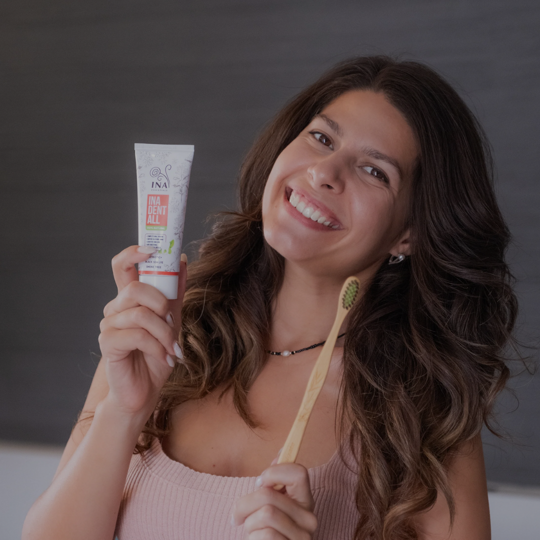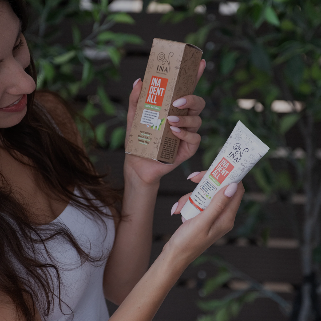 Ina Dent-All je přírodní, formulovaná s pečlivě vybranými rostlinnými složkami a bez škodlivých chemikálií, které se často nacházejí v tradičních zubních pastách.